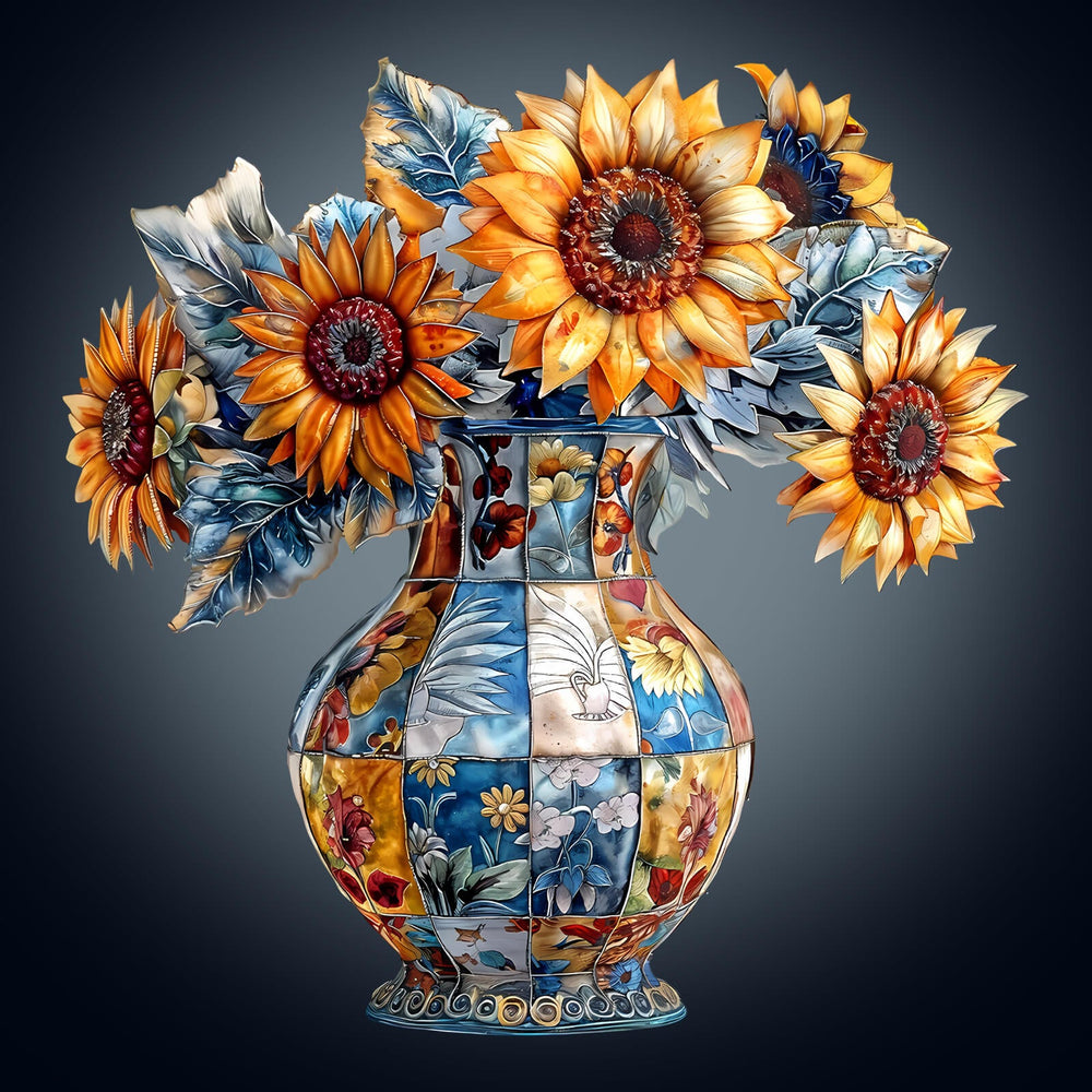 patchwork sunflower Wooden Jigsaw Puzzle