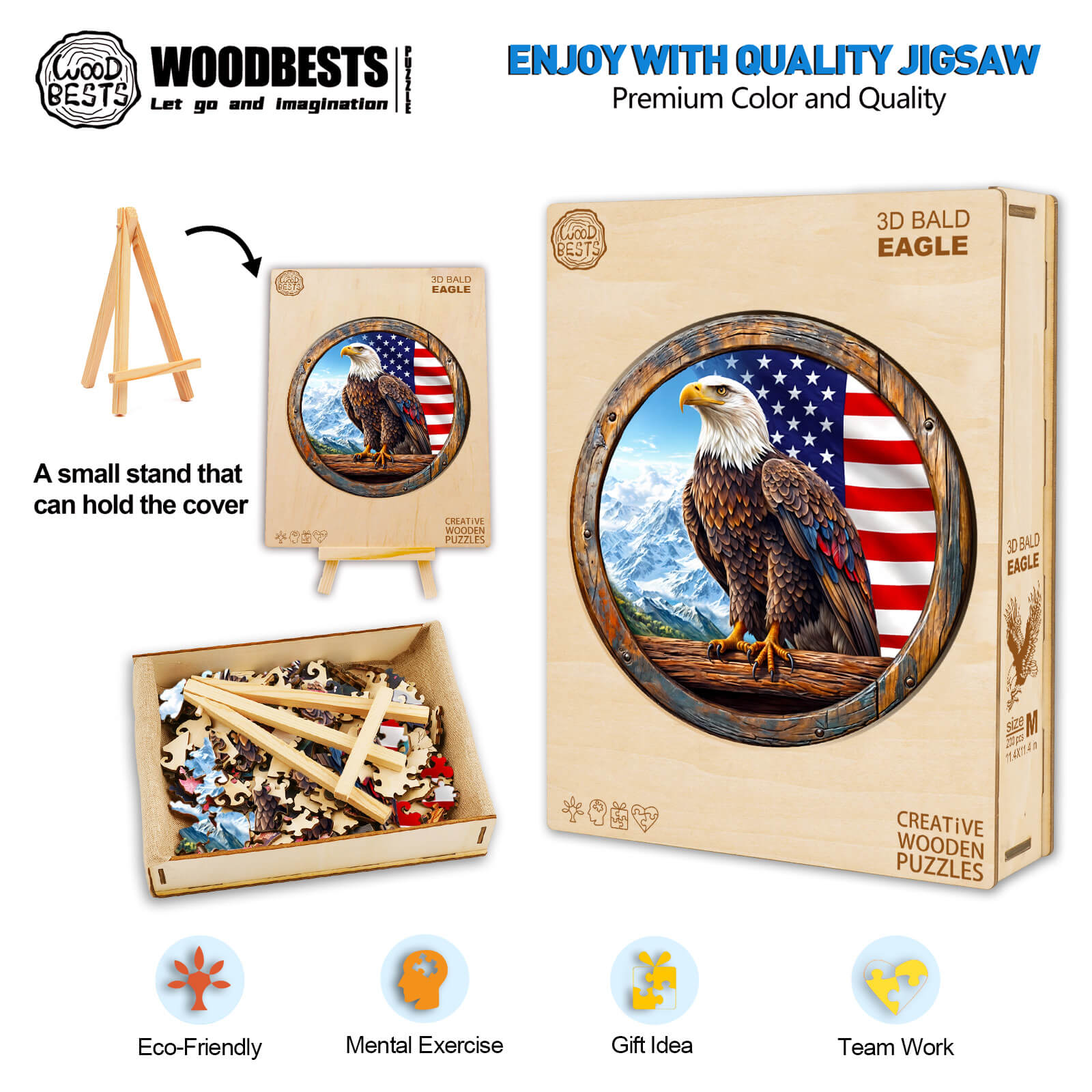 3D Bald Eagle Wooden Jigsaw Puzzle - By Woodbests