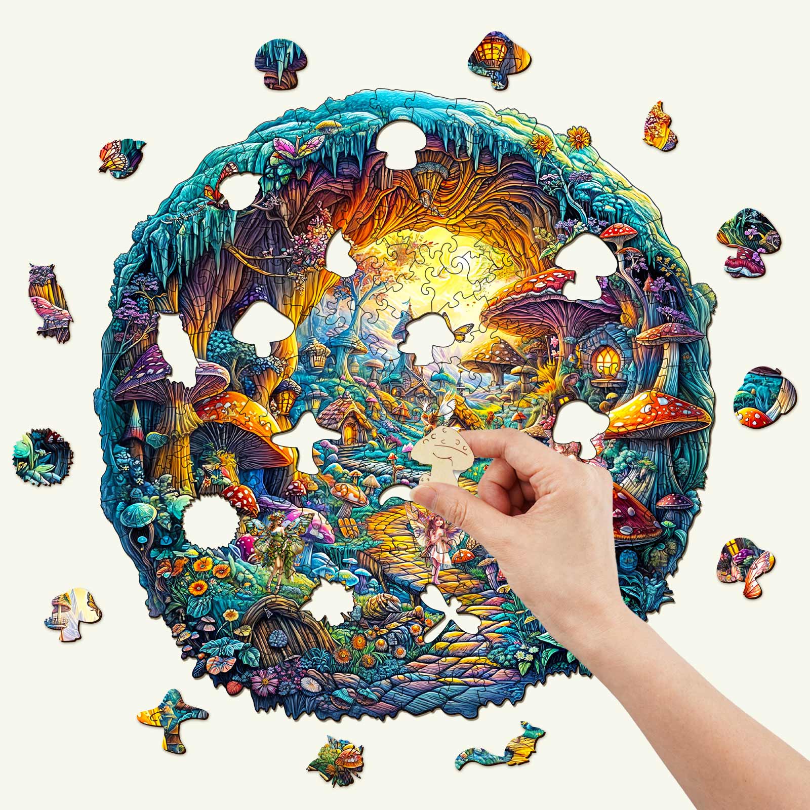 3D Mushroom Village Wooden Jigsaw Puzzle