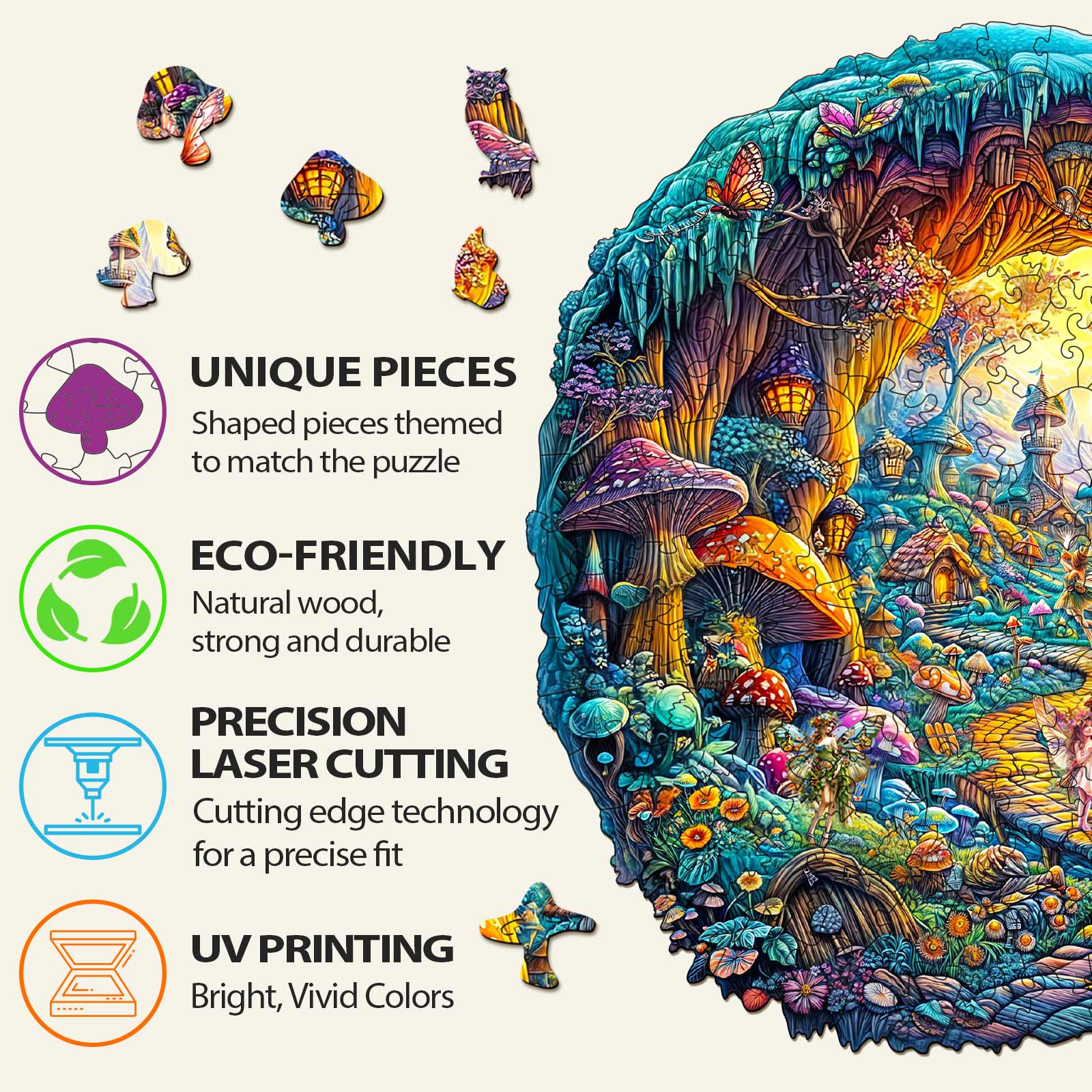 3D Mushroom Village Wooden Jigsaw Puzzle - By Woodbests