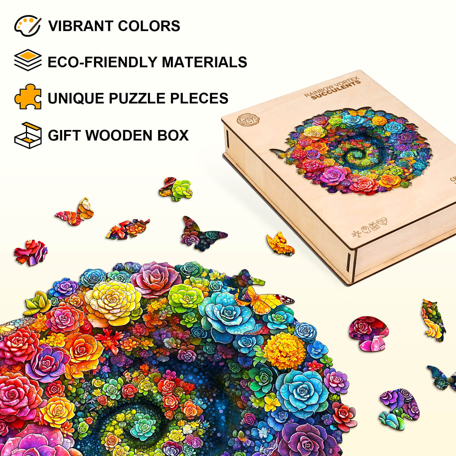 Rainbow vortex succulents Wooden Jigsaw Puzzle