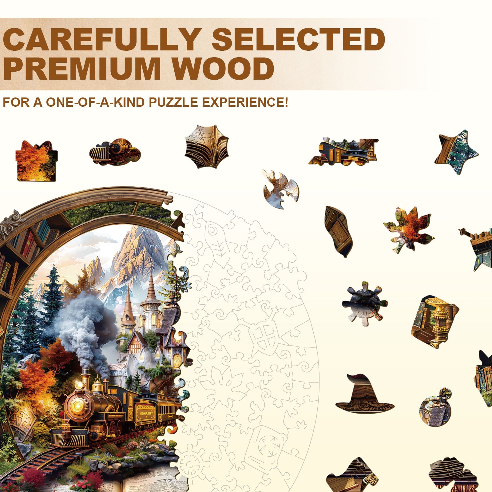Whimsically shaped pieces that reflect the puzzle’s theme for a fun and engaging experience.